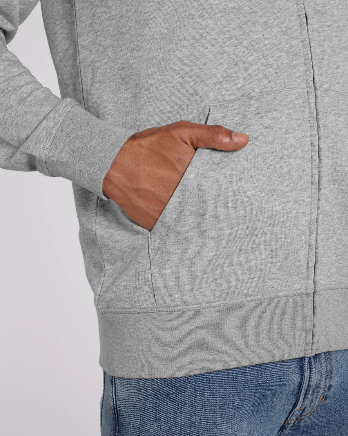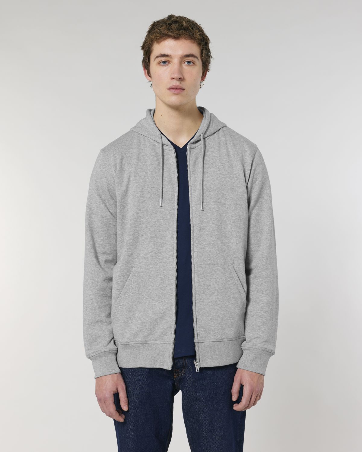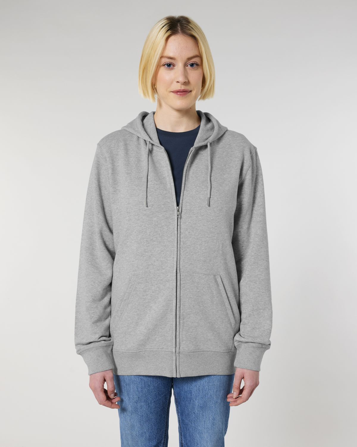 Unisexová mikina vyrobena z bavlny a polyesteru. Podšitá kapuce, šňůrky v barvě textilu s kovovým zakončením. Kovový krytý zip. Klokaní kapsa. 1x1 žebrování u lemu rukávů a spodního lemu.
