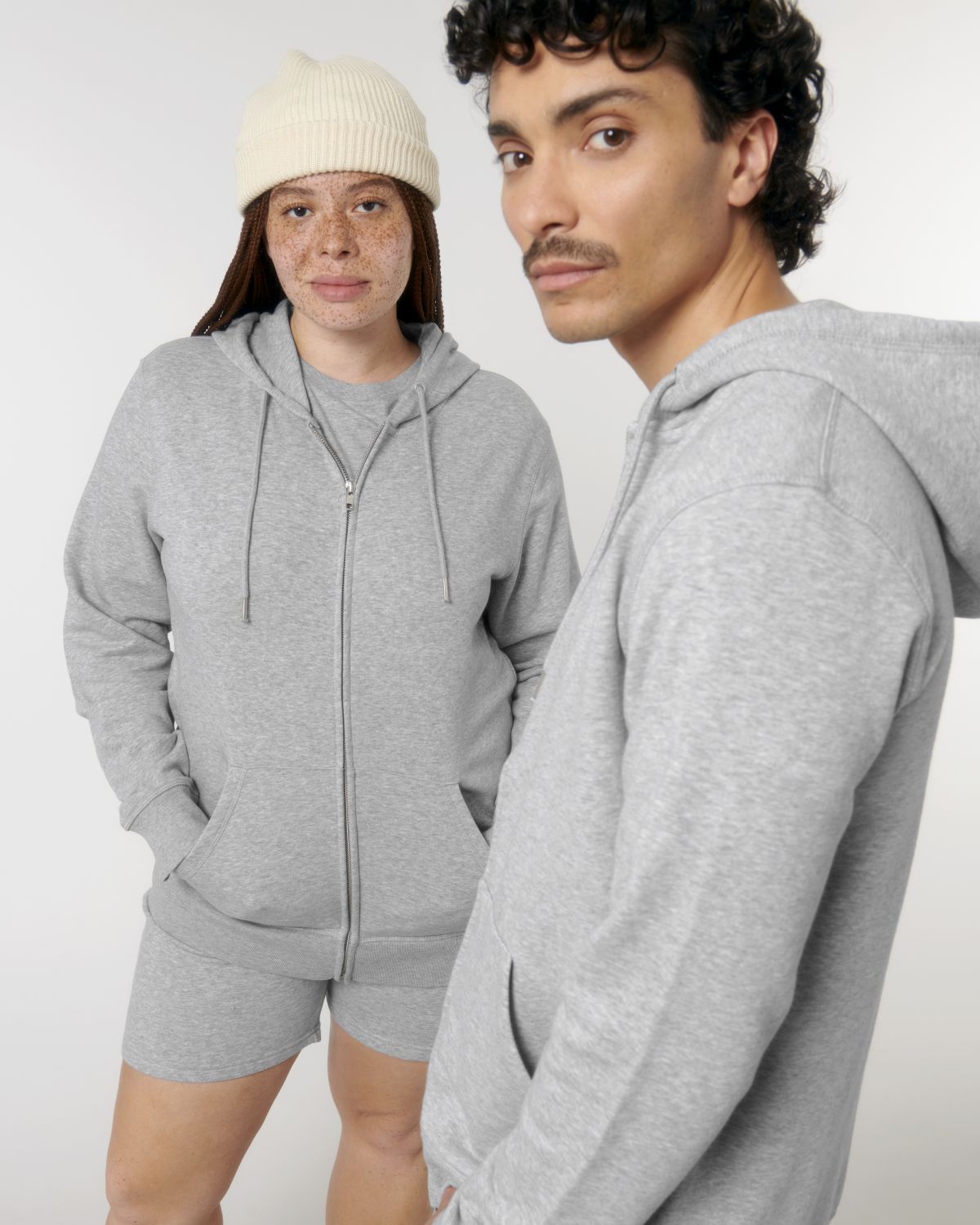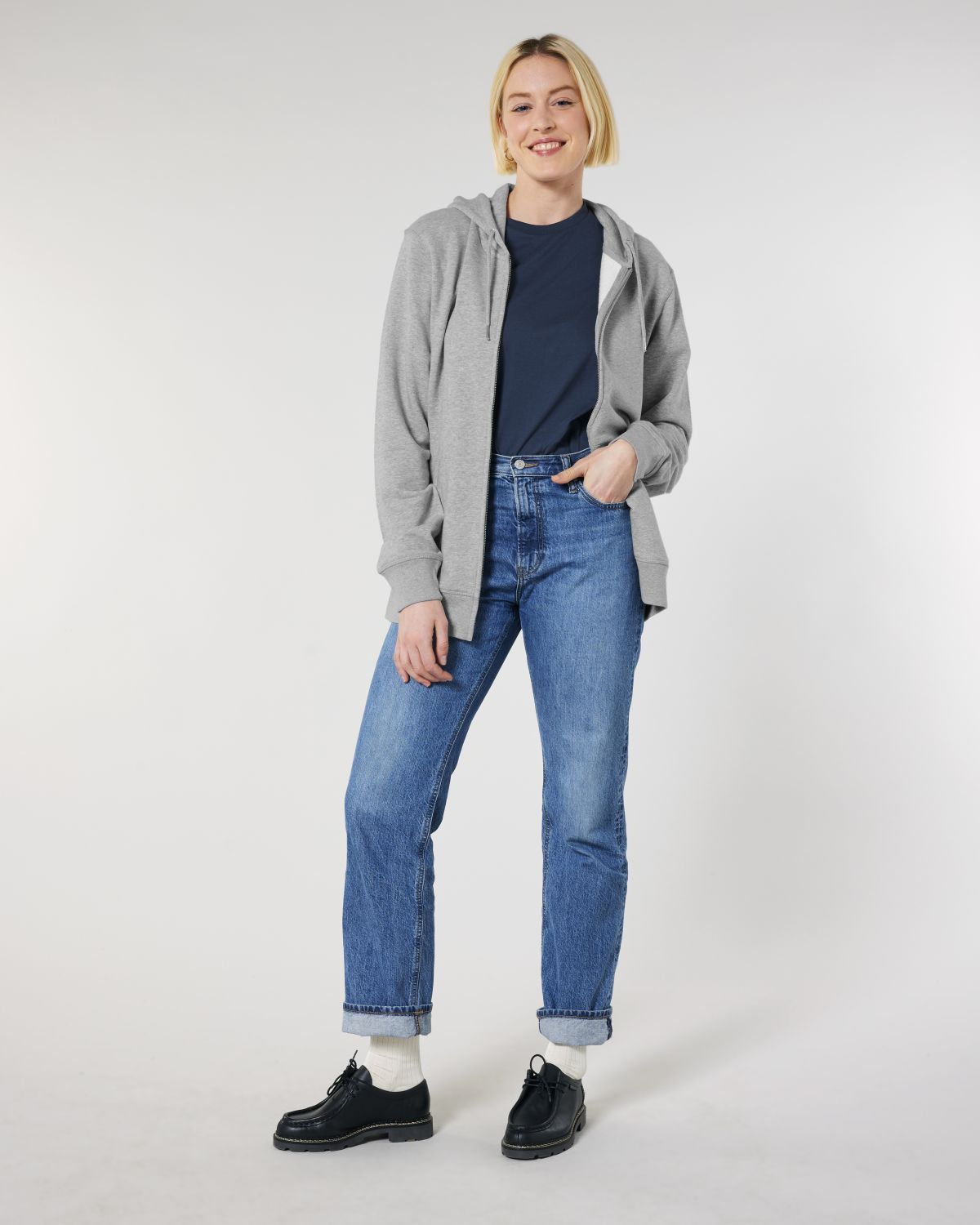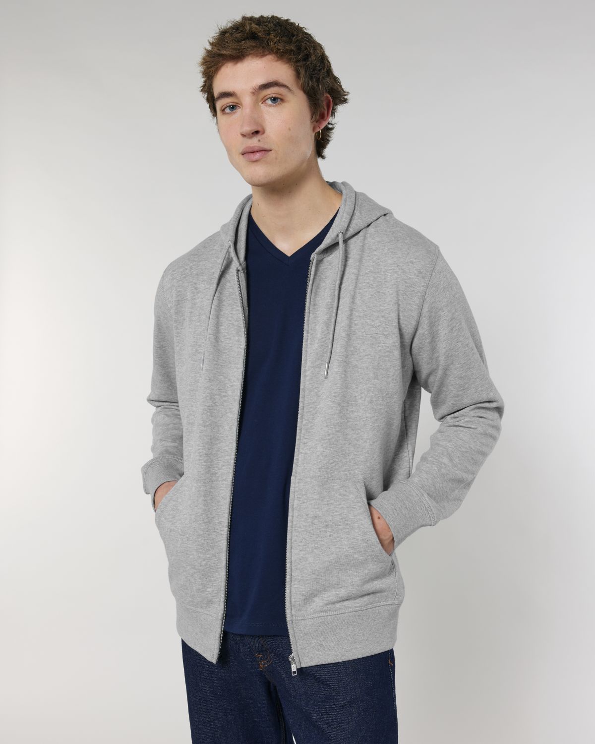 Unisexová mikina vyrobena z bavlny a polyesteru. Podšitá kapuce, šňůrky v barvě textilu s kovovým zakončením. Kovový krytý zip. Klokaní kapsa. 1x1 žebrování u lemu rukávů a spodního lemu.