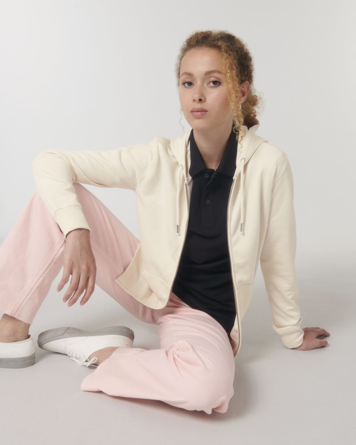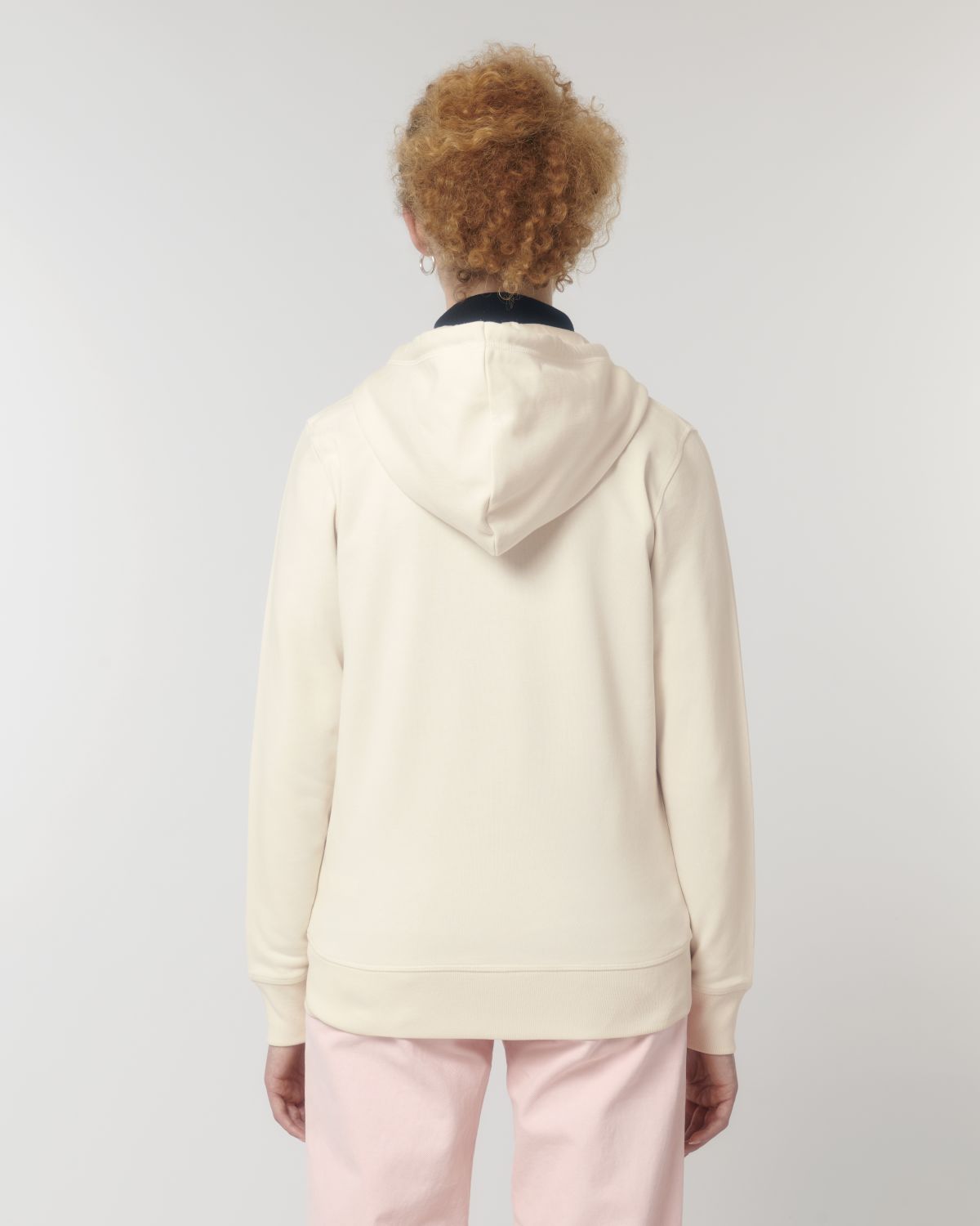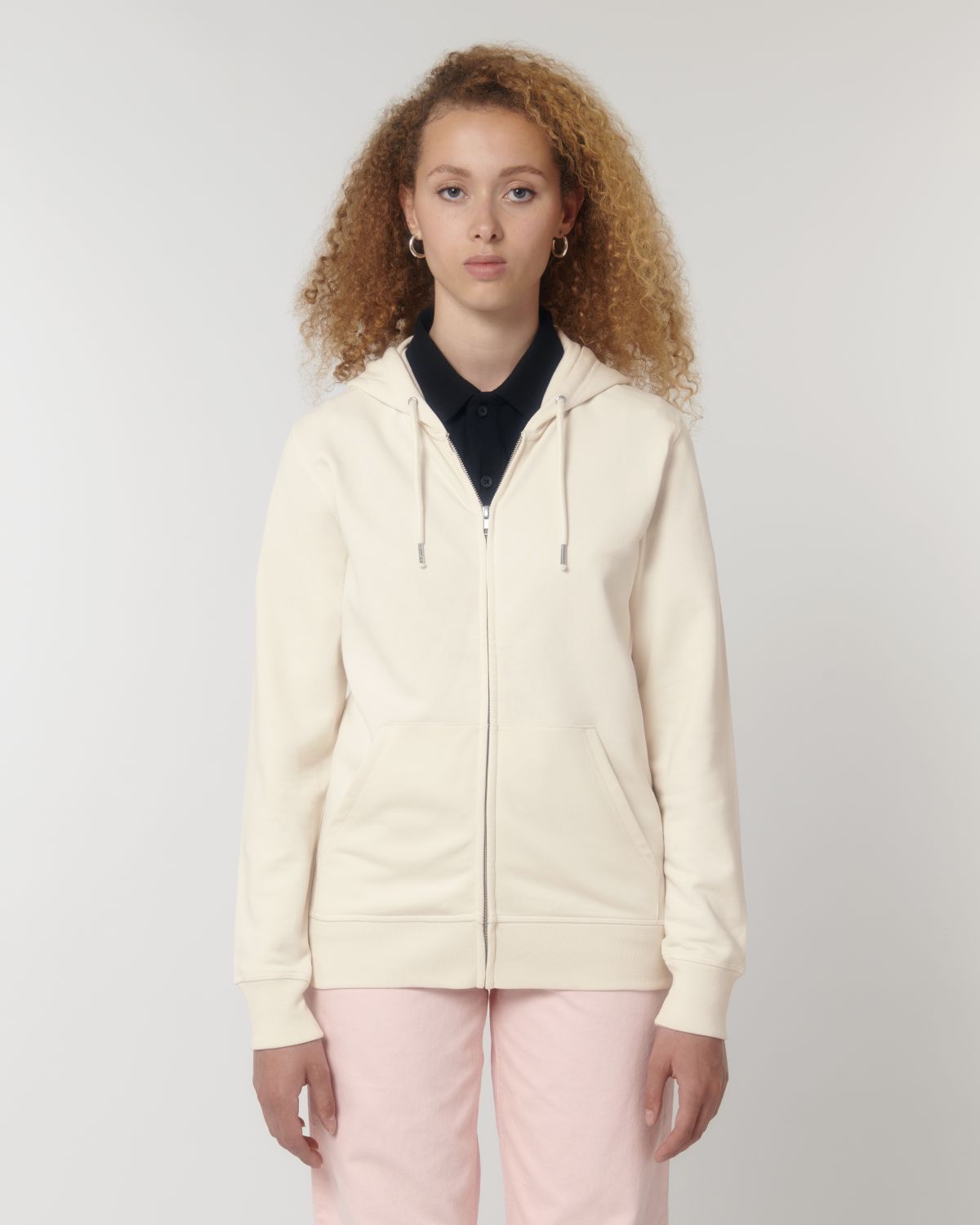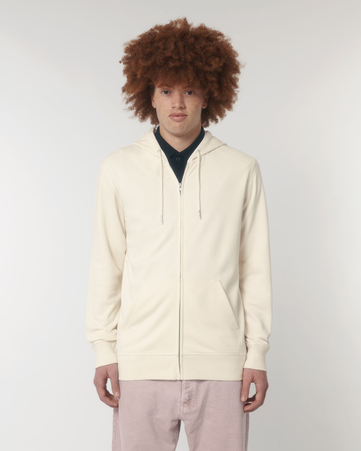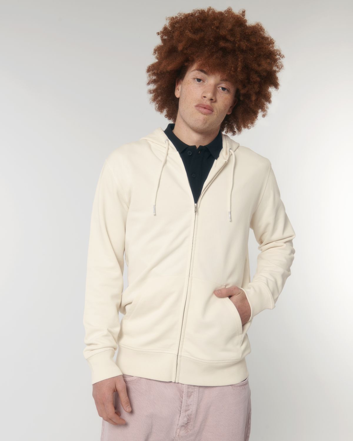 Unisexová mikina vyrobena z bavlny a polyesteru. Podšitá kapuce, šňůrky v barvě textilu s kovovým zakončením. Kovový krytý zip. Klokaní kapsa. 1x1 žebrování u lemu rukávů a spodního lemu.