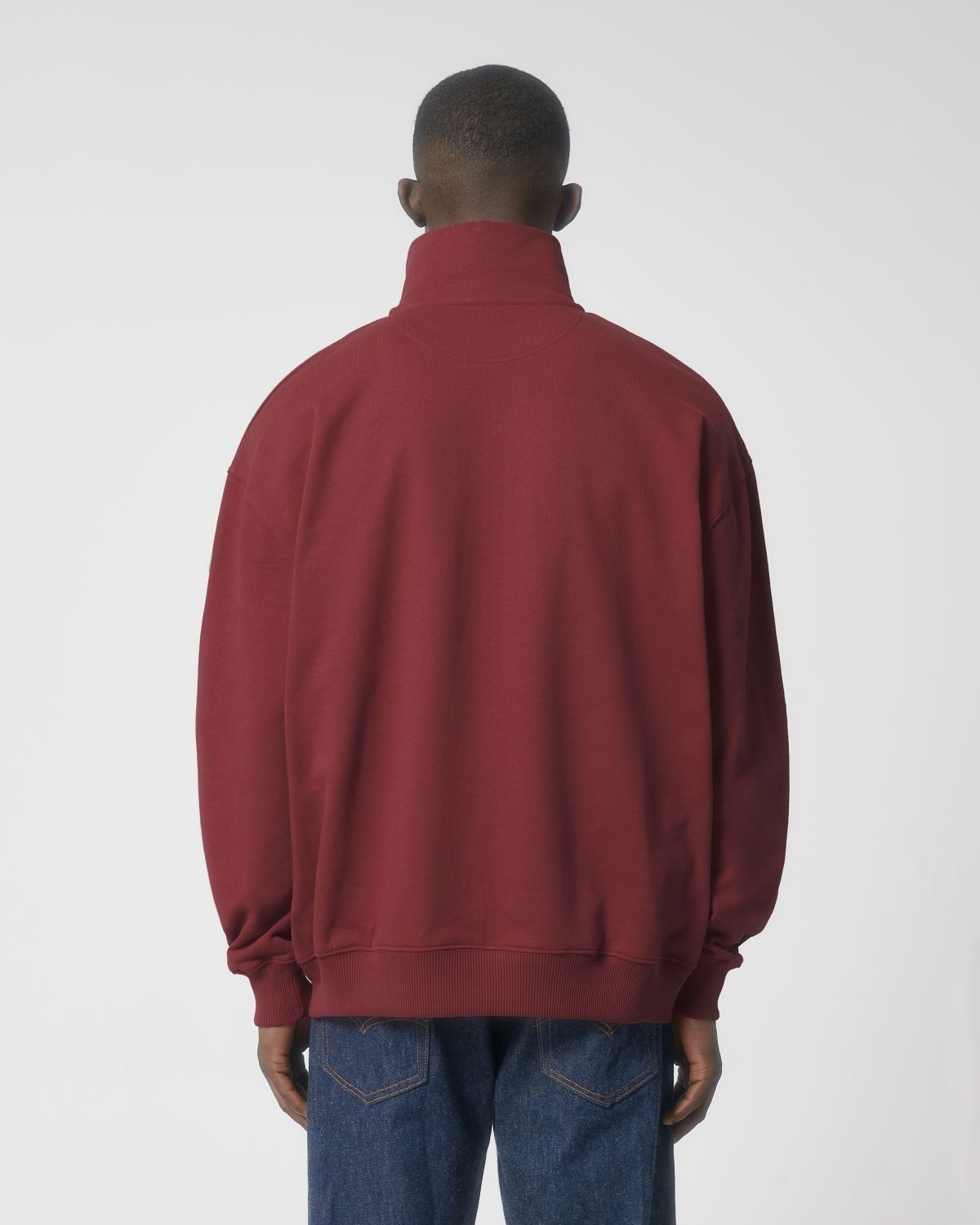 Bavlněná unisexová mikina se stojáčkem. Zip v horní třetině předního dílu. 2x1 žebrování rukávů a spodního lemu, dvojité prošívání.