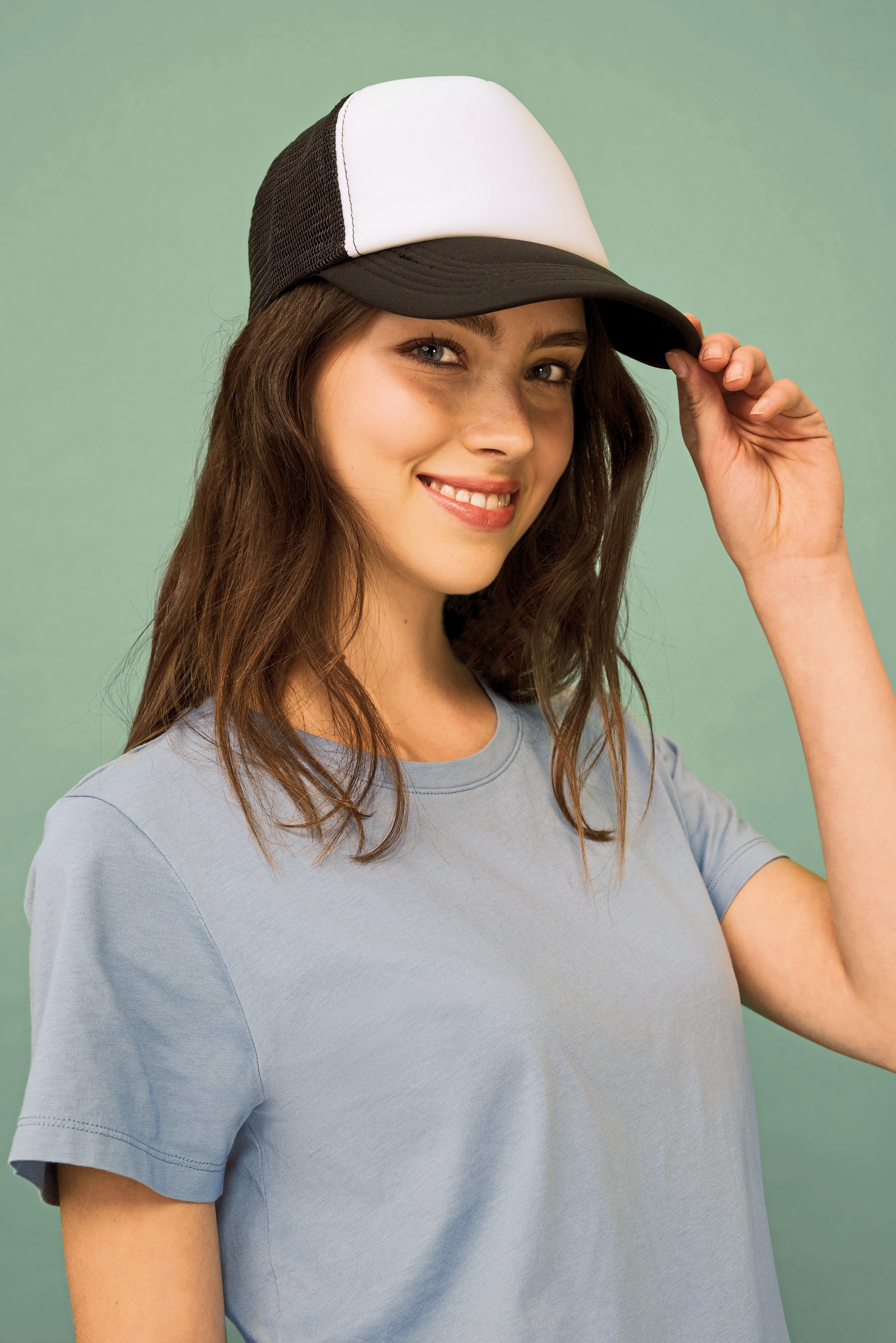 Polyesterový přední díl (5 mm pěna) a kšilt (3 mm pěna). Polyesterová síťovina. Nastavitelné plastové zapínání.