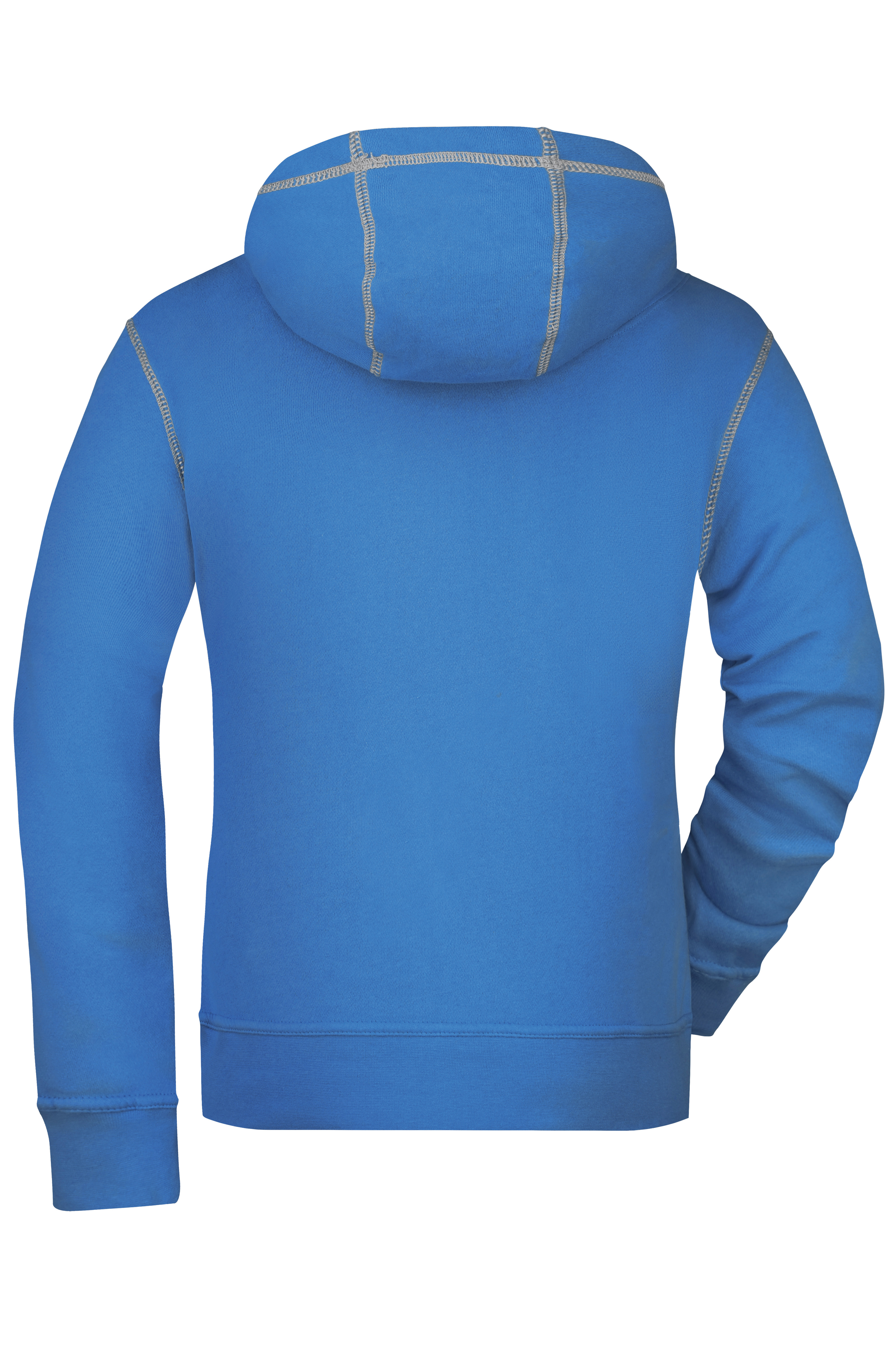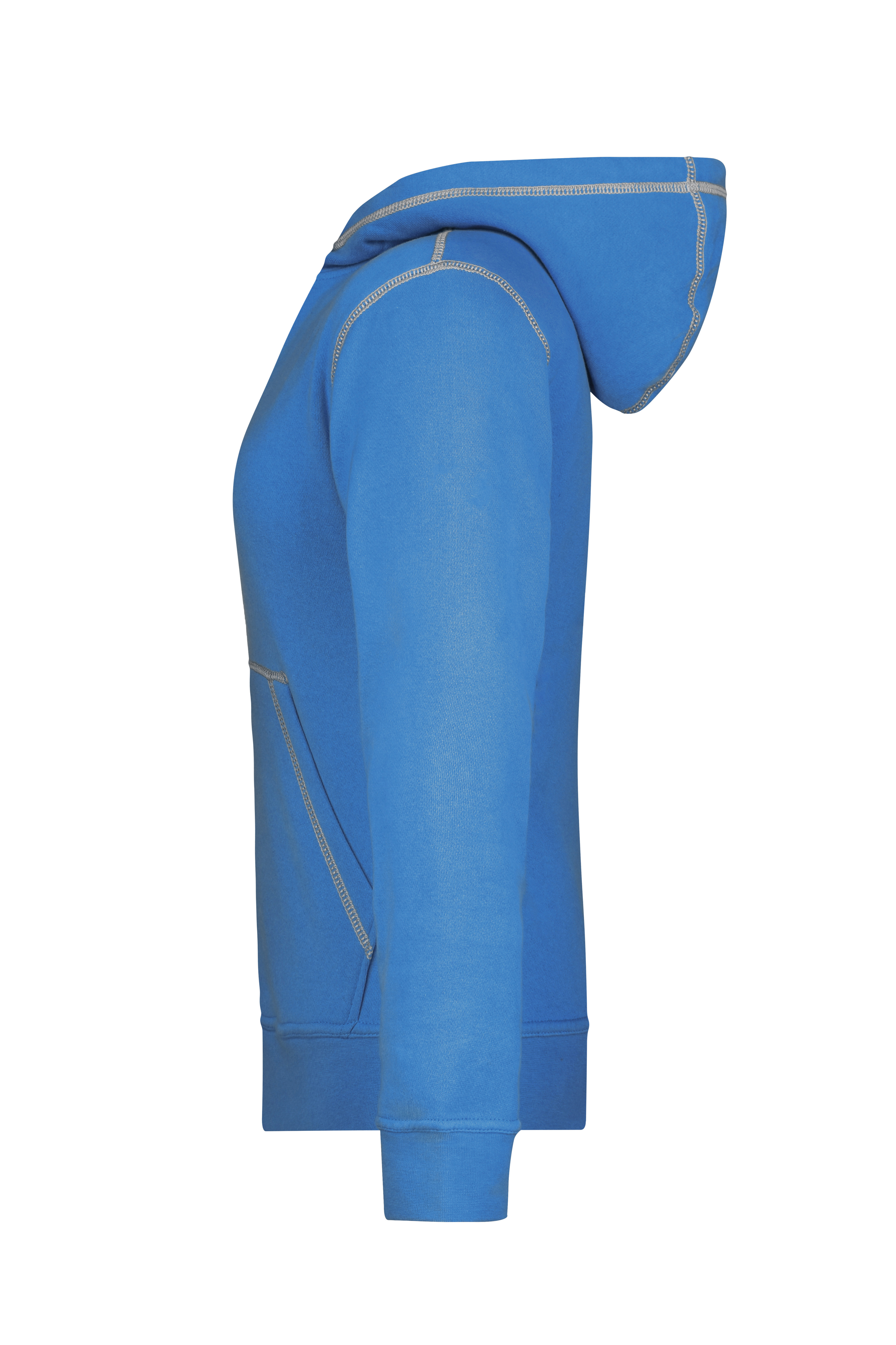 Mikina s kapucí s módními kontrastními švy. Vysoce kvalitní mikina s kapucí, uvnitř zdrsněná. Manžety s elastanem. Kontrastní barva prošívání plochým švem. Dvouvrstvá kapuce uvnitř a šňůrka v kontrastní barvě. Kapsa klokanka. Lehce vypasovaný, ležérní styl. Česaná kruhově dopřádaná bavlna.
