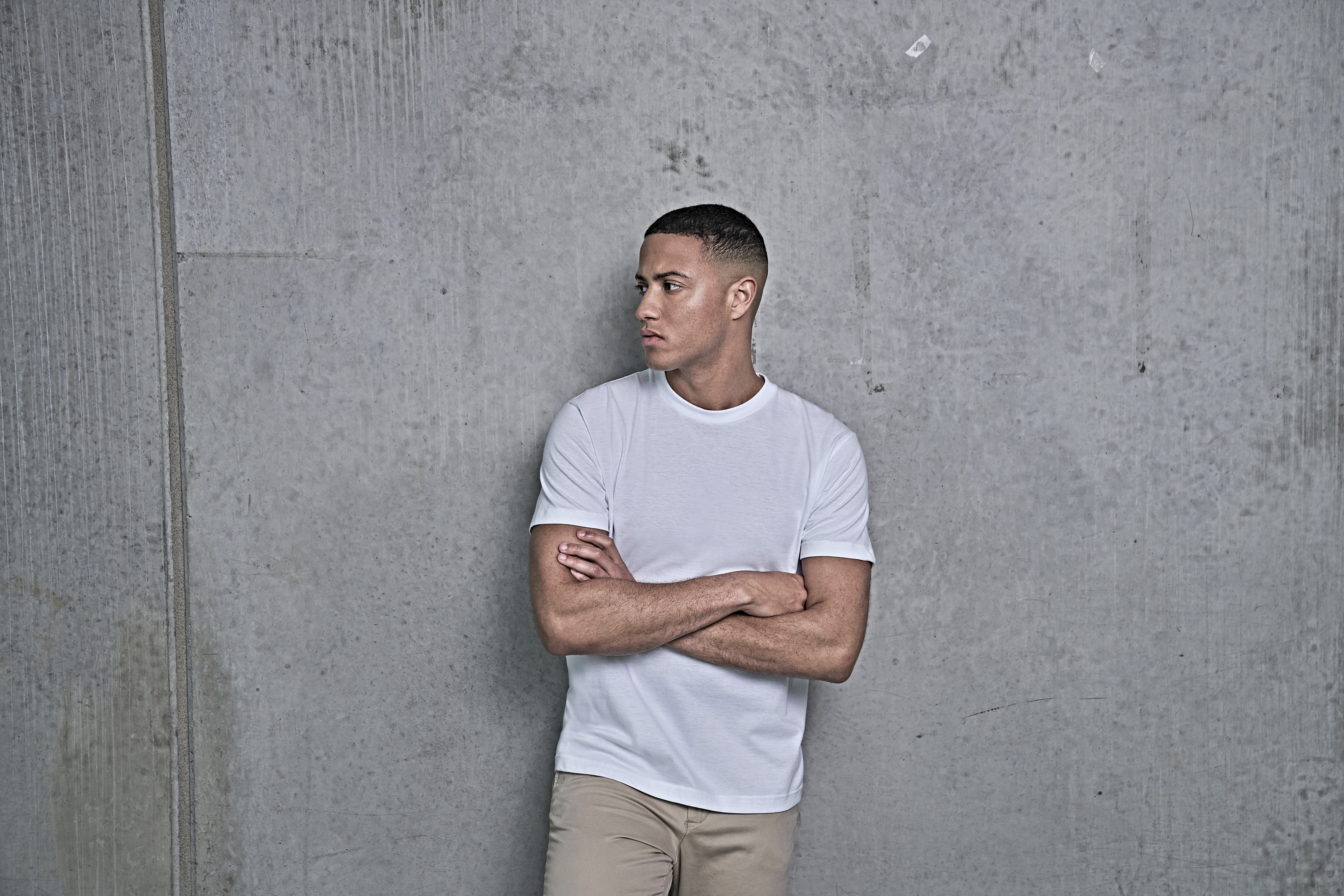 Dvouvrstvý límec s elastanem. Dvojité prošívání. Předsrážené. Kruhové pletené tělo (S–XXL). Česaná kruhově dopřádaná bavlna. Zpevňovací páska za krkem a od ramene k rameni.
